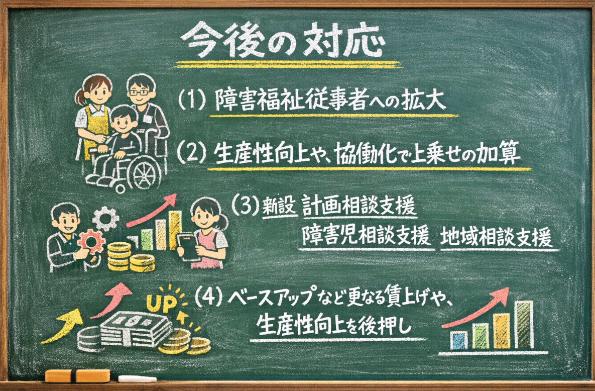 これは単なる数字の調整ではなく、「人材を確保すること」と「現場の業務効率を上げること」を強く結びつけた、国からのメッセージ性の強い改定と言えます。