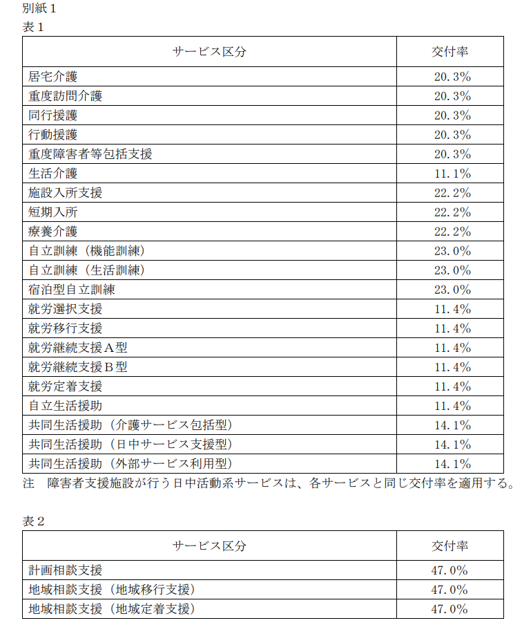 「基準月の障害福祉サービス等総報酬 × サービス区分ごとの交付率」