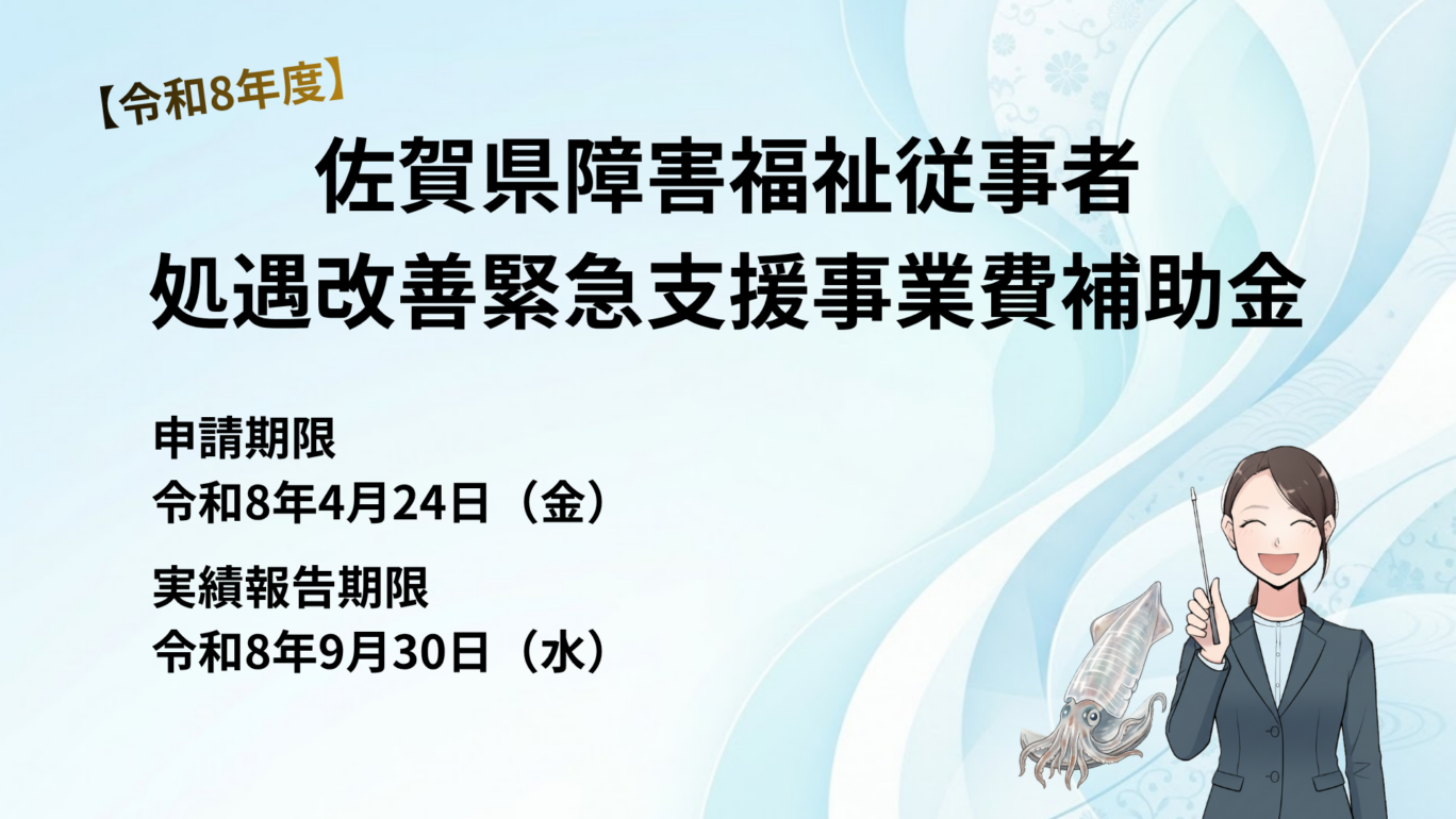 佐賀県では、障害福祉分野の人材不足や人材流出への対応として、障害福祉従事者の賃上げを支援するための「障害福祉従事者処遇改善緊急支援事業費補助金」が案内されています。