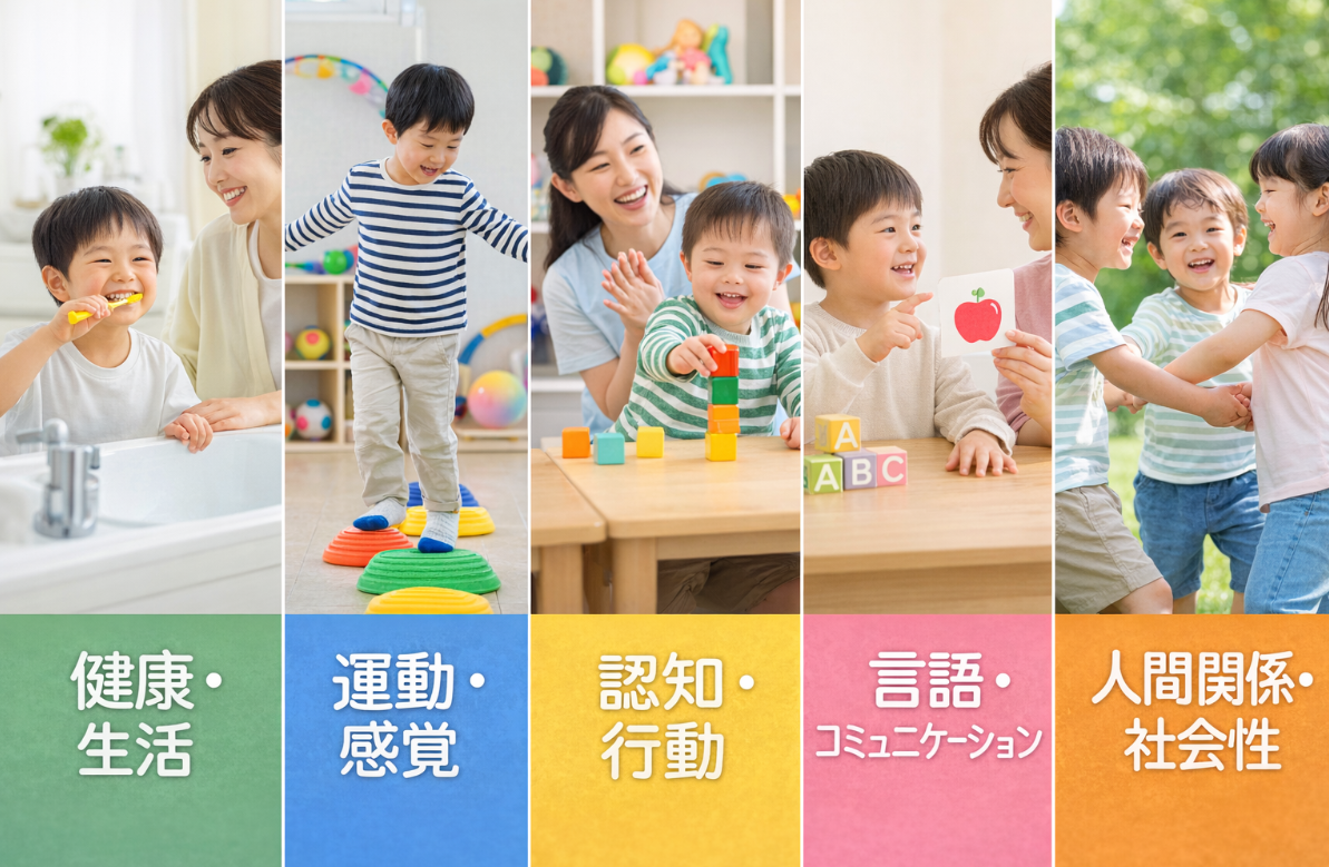 具体的にどのような支援が含まれるのか、5つの領域ごとにわかりやすく解説します。
